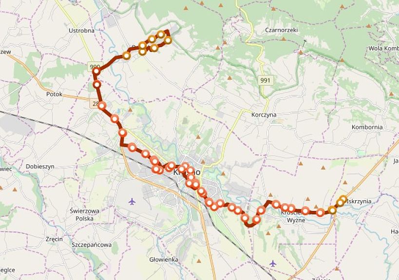 Na czas objazdu nie będzie obsługiwany przystanek Odrzykoń - Most na ul. Kazimierza Wielkiego oraz Odrzykoń Skrzyżowanie na ul. Sportowej (zamiennie będzie obsługiwany przystanek Potok zlokalizowany na drodze 990 na granicy Krosna i Ustrobnej).